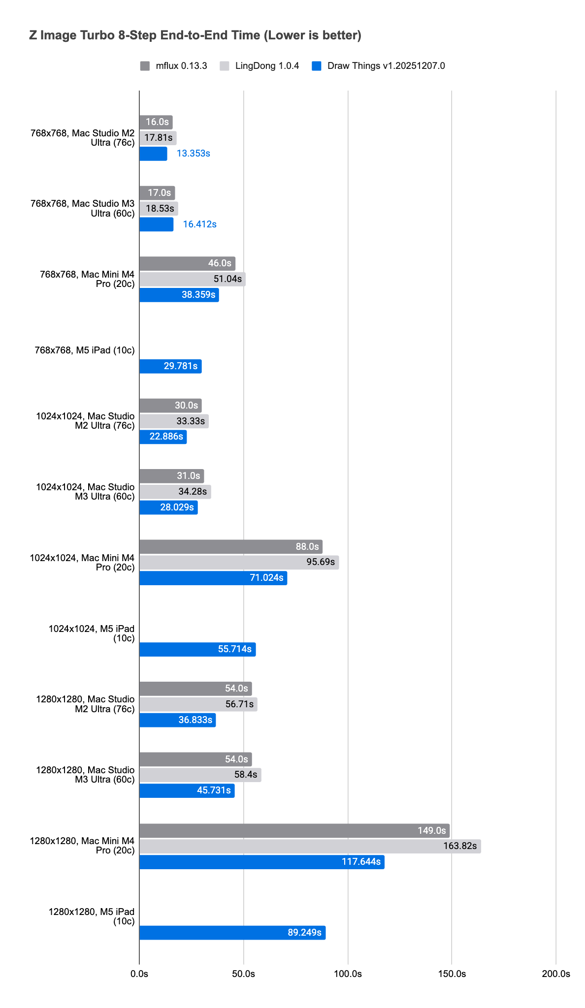 Draw Things is promised to be the most efficient way to run generative media on your Apple devices. When Z Image Turbo arrived, we knew we had to support it and rigorously quantify its performance and quality claims.